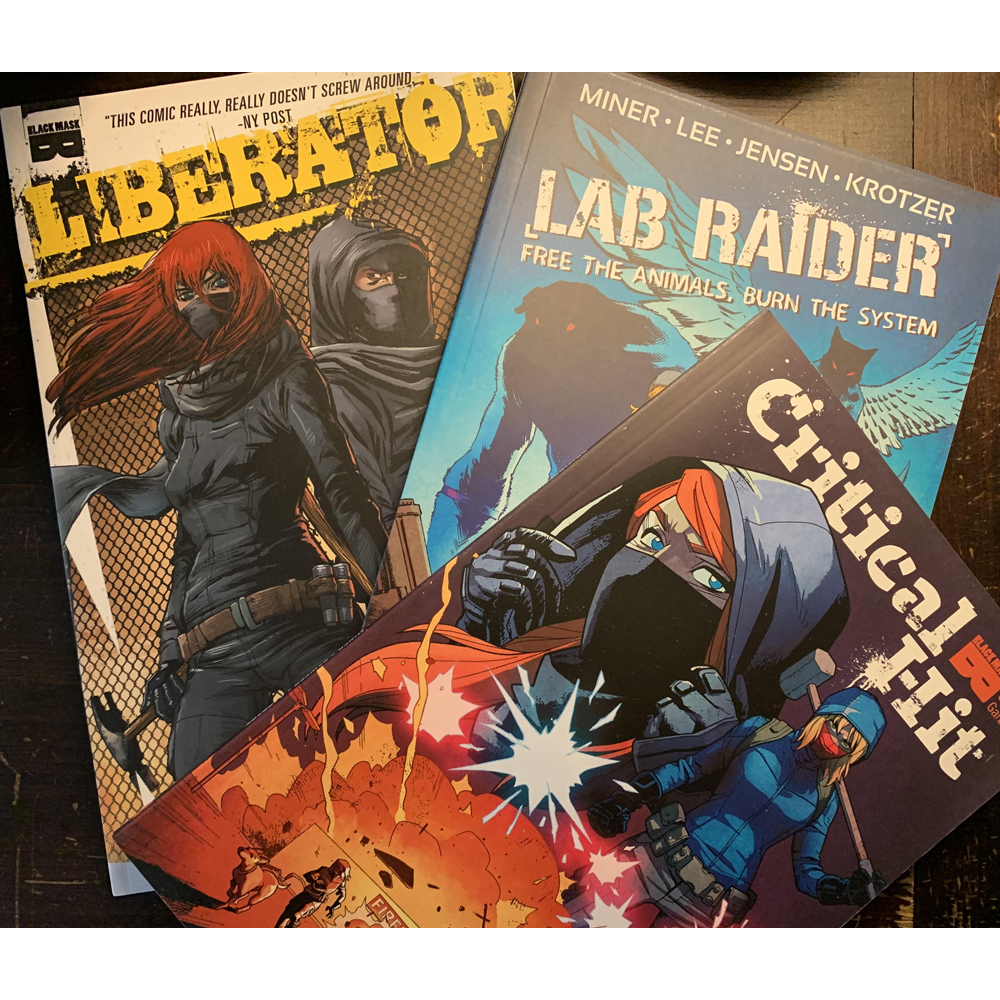 From the first adventures in LIBERATOR with Damon and Jeanette taking down fur farms to Sarah and Jeanette's team-up in CRITICAL HIT against sport hunters, to the shocking conclusion in LAB RAIDER, the animal-avenging comic epic is collected in this group of 3 paperback books for your convenience.